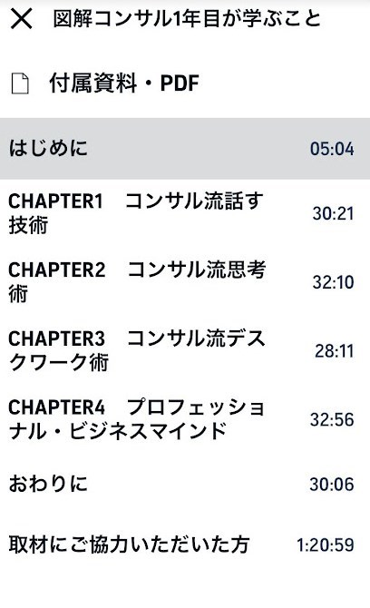 期間中なら聴き放題なので「コンサル一年目が学ぶこと」以外のビジネス書籍も無料で聴けます。